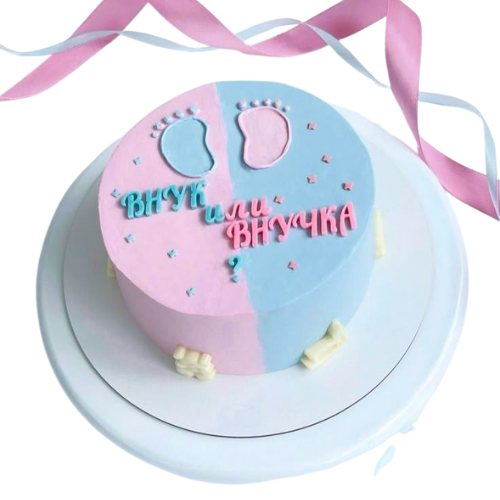 Celebrate the joy of parenthood with the Footprints Reveal Cake, designed in pastel blue and pink with adorable fondant baby footprints. Perfect for gender reveal and baby shower parties, this cake is a beautiful centerpiece that adds charm and excitement to your celebration. Freshly baked with premium ingredients, it combines elegant design with a delightful taste. Available for delivery in Lahore, Karachi, and Islamabad, and can be personalized with names or special messages to make the moment truly memorable.